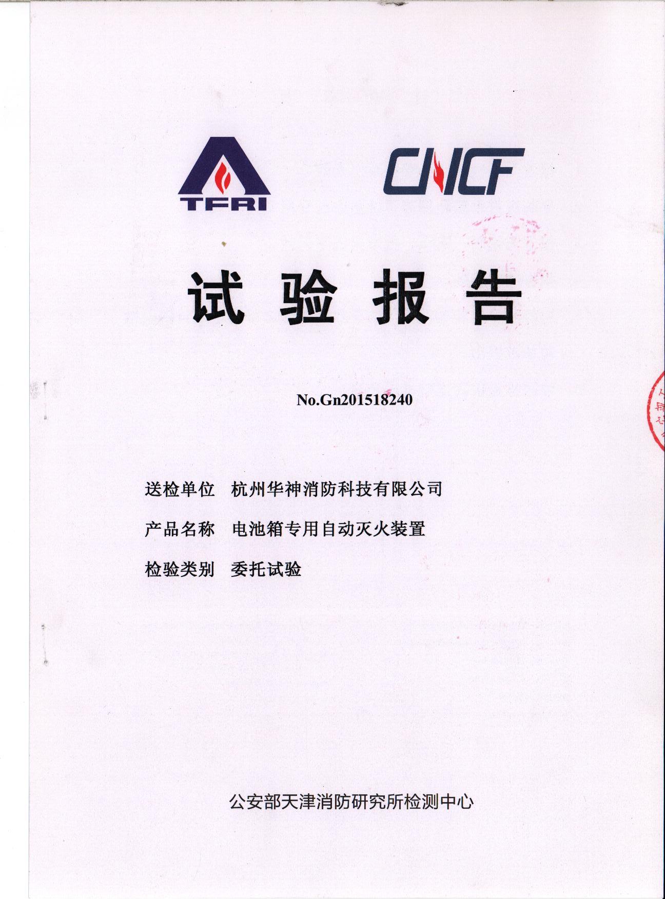 此項(xiàng)試驗(yàn)報(bào)告的取得,是“恒神”電池箱專用自動(dòng)滅火裝置走向市場(chǎng)、被動(dòng)力電池、新能源汽車廠商認(rèn)可使用的權(quán)威通行證。